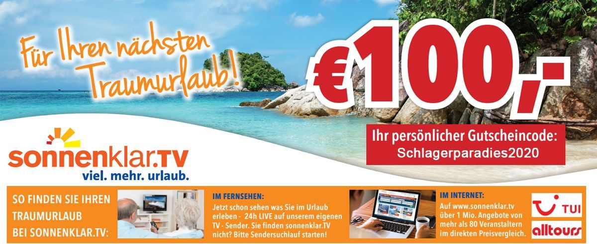 *Einlösbar auf Pauschalflugreisen und Kreuzfahrten, Mindestpreis 999€. Gutscheincode-Gültigkeit (Buchungsdatum): bis 31.12.2024. Der Gutscheincode ist nicht mit anderen Gutscheinaktionen kombinierbar. Pro Reisebuchung kann nur ein Gutscheincode zur Einlösung gebracht werden. Bitte geben Sie den Gutscheincode bei Ihrer Buchung (online, telefonisch oder im teilnehmenden Reisebüro) an. Rückwirkend kann der Gutscheincode nur telefonisch innerhalb von 2 Tagen nach der Buchung eingelöst werden (gilt nicht für Buchungen im Reisebüro, hier muss der Gutschein immer vor Buchung angegeben werden). Die Einlösung und Auszahlung des Gutscheinwertes erfolgt nach Abreise und Rückkehr des Kunden auf das angegebene Konto. Eine Verrechnung mit dem Reisepreis ist nicht möglich. Der Gutscheincode ist nicht einlösbar auf Produkte folgender Anbieter: e-kolumbus, e-domizil und snowtrex.